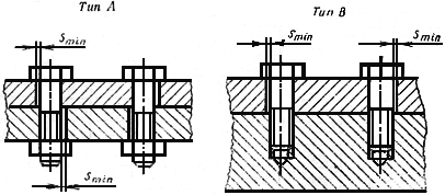 Указания по выбору позиционных допусков осей отверстий в зависимости от типа соединения крепежными деталями, зазора для прохода крепежных деталей в сквозных отверстиях и других условий сборки приведены в приложении 1.