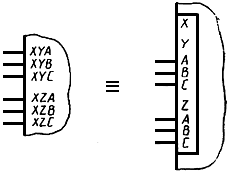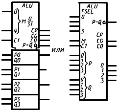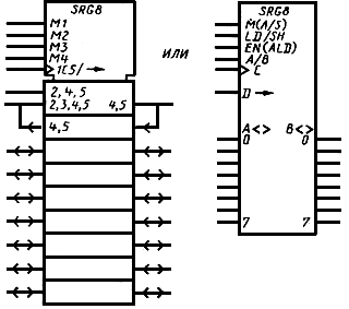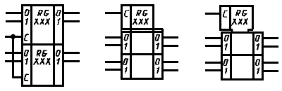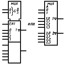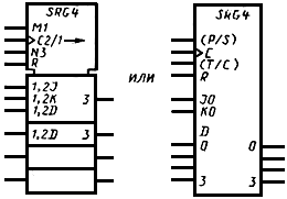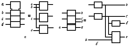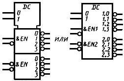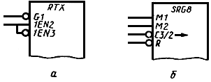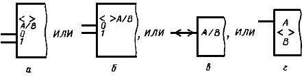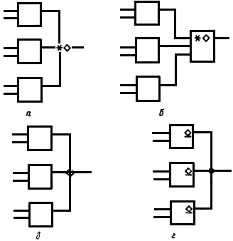 Примеры УГО с контурами управления и общего выходного элемента приведены на черт.23а и черт.23б соответственно.
