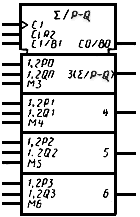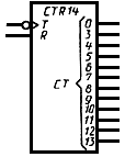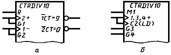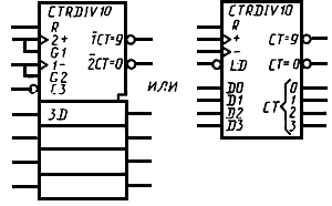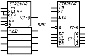 2. Допускается общий выходной элемент указывать в контуре общего блока управления (например, выход "СТ-9" УГО счетчика, табл.14, п.12).