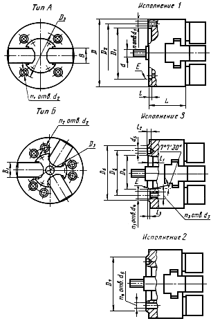 Патроны токарные самоцентрирующие трех- и двухкулачковые клиновые и рычажно-клиновые. Основные размеры