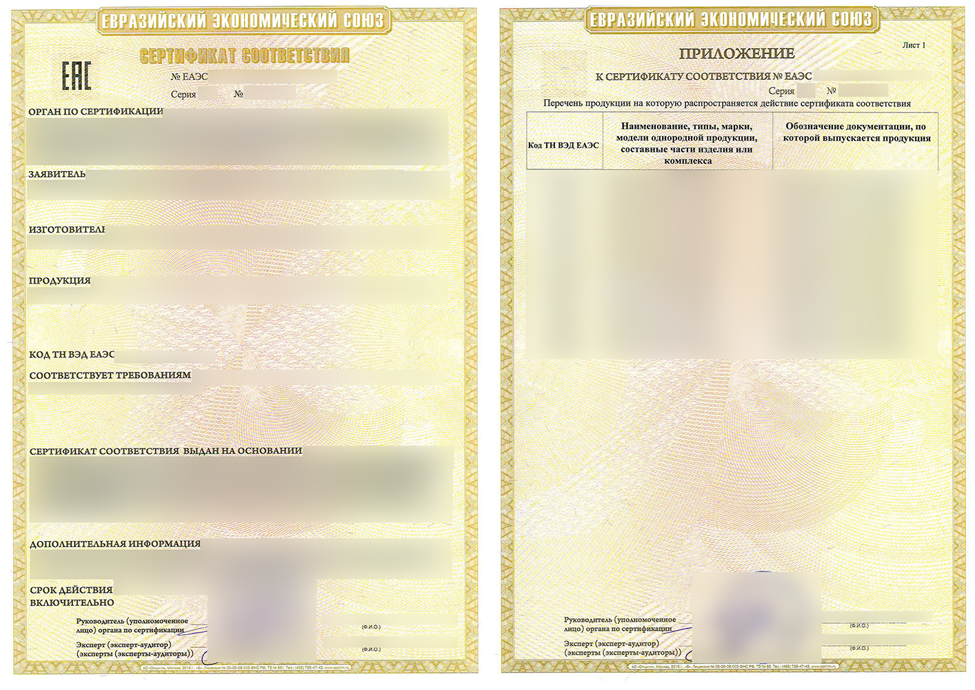 Если для данного изделия формой контроля качества согласно действующему законодательству является сертификат, он может быть оформлен по одному из образцов:
